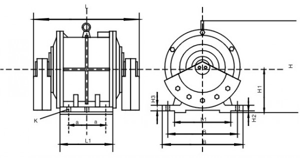 | 軸向a | 橫向b | 安裝孔k | B | b1 | L | L1 | H | H1 | H2 | H3 | ||||||